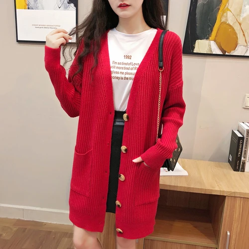 Tingyili Long Cardigan Women Autumn Winter Fashion V Neck Sweater Cardigan Khaki Blue Green Black Red Cardigan Knitted Cardigan Aliexpress